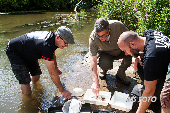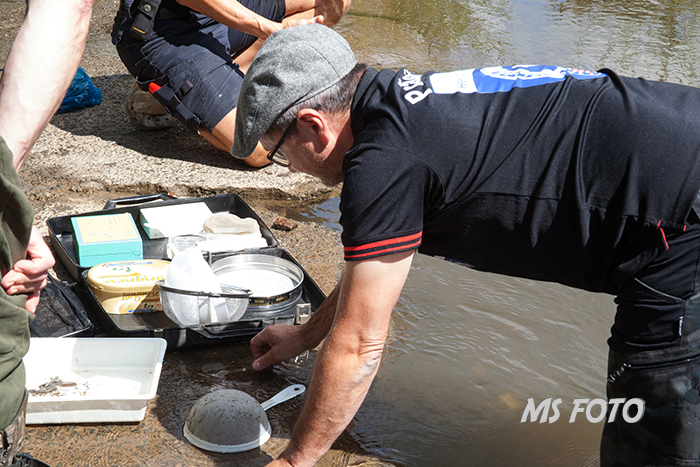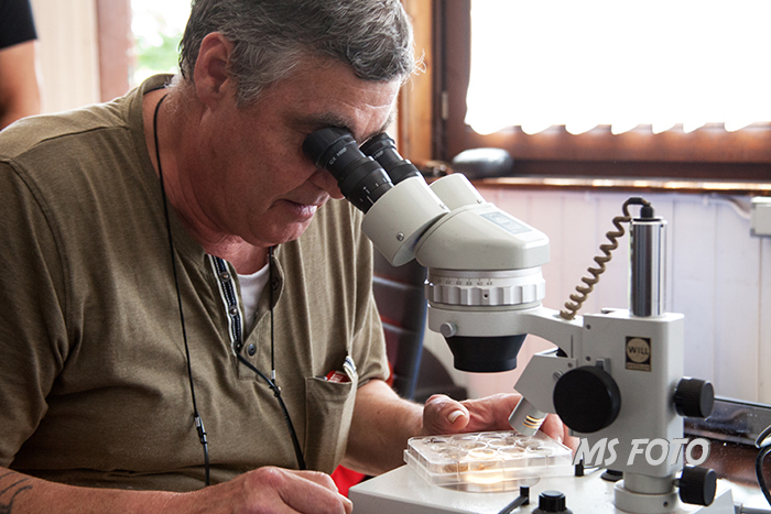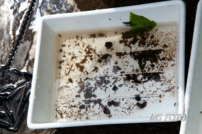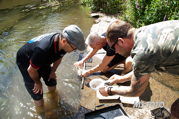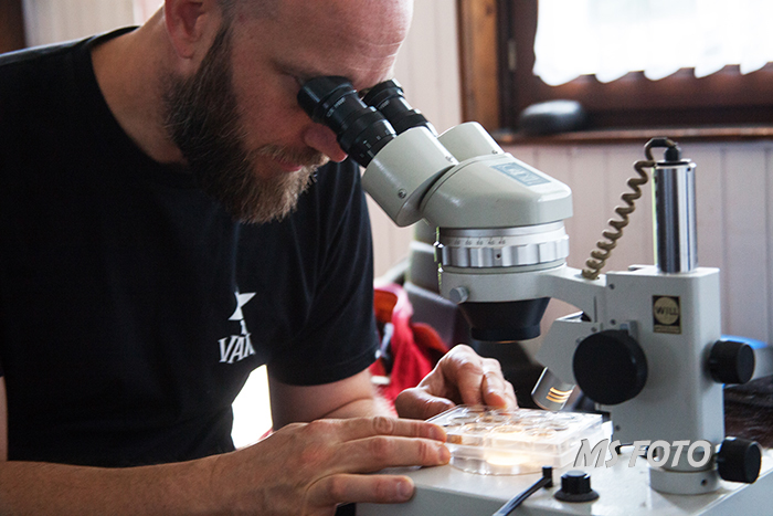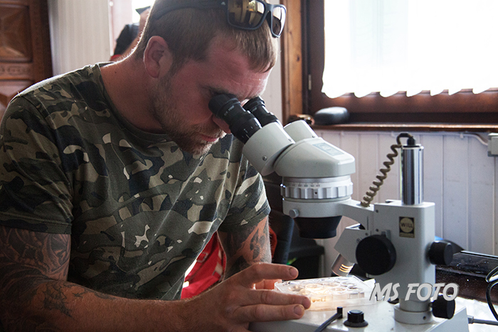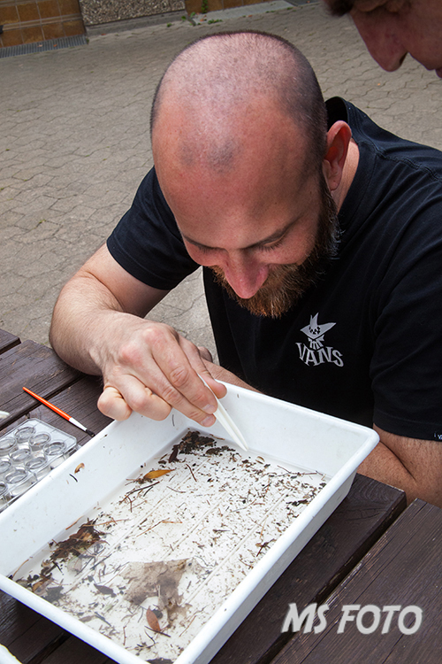 Jetzt wird sortiert und gezählt und auch schon Tiere in die Schalen für das Binokular verbracht.