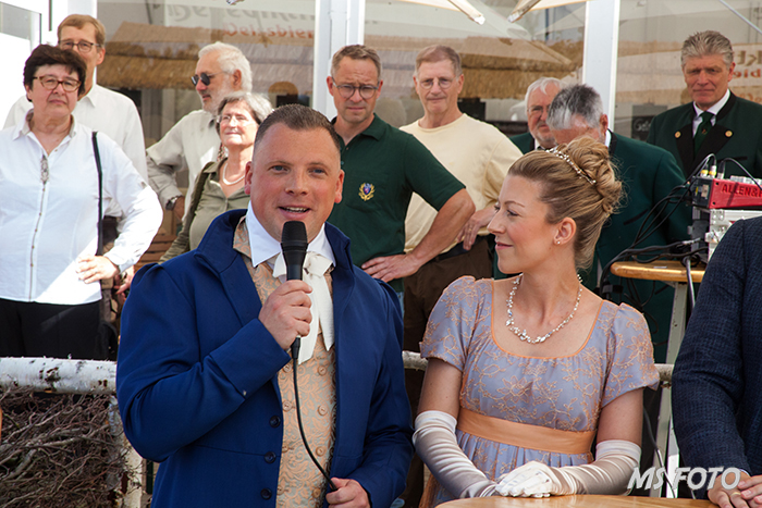 Das Hessenpaar Ena Kaufmann und Matthias Kallmeyer mit dem Bürgermeister