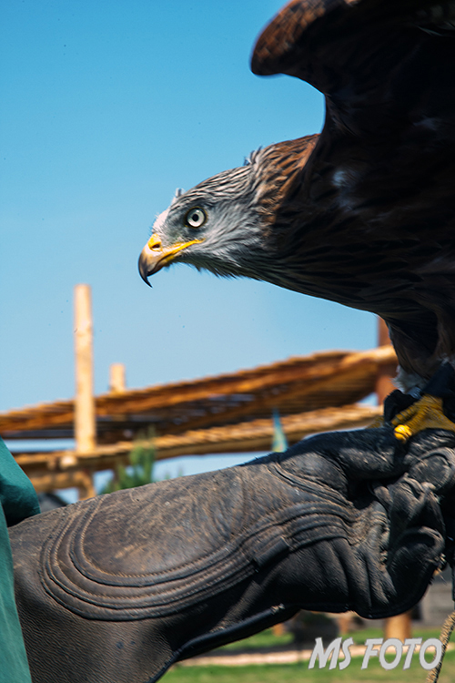 Falkner Michael Schanze präsentierte einen Rotmilan.