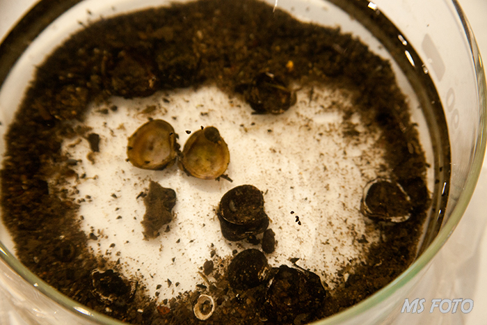 Auch die reinigende Wirkung von Teichmuscheln lässt sich vor Ort begutachten.