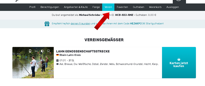 Dann geht ihr oben in der Navigation auf den Reiter "Verein"